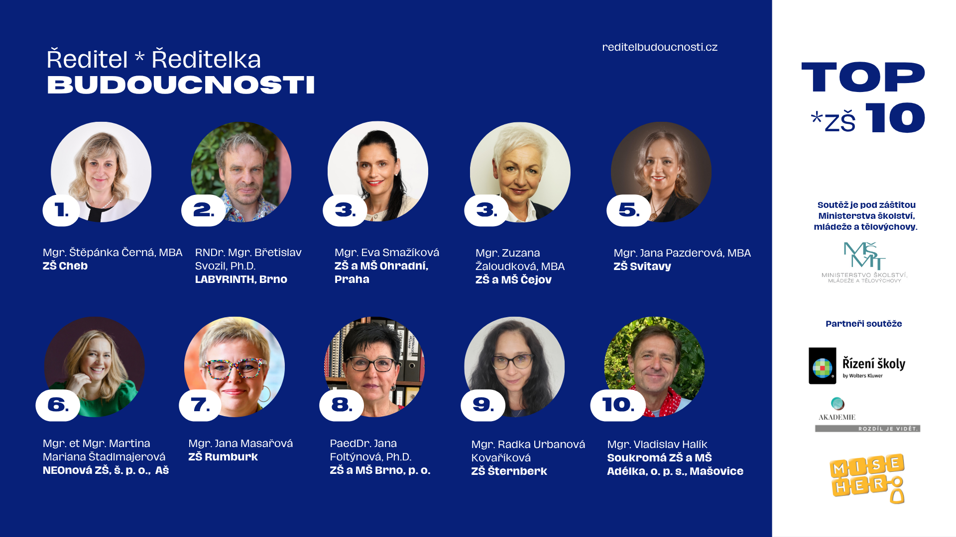 Soutěž Ředitel * Ředitelka BUDOUCNOSTI je prestižní ocenění pod záštitou Ministerstva školství, mládeže a tělovýchovy, které vyzdvihuje osobnosti, jež školství mění k lepšímu.